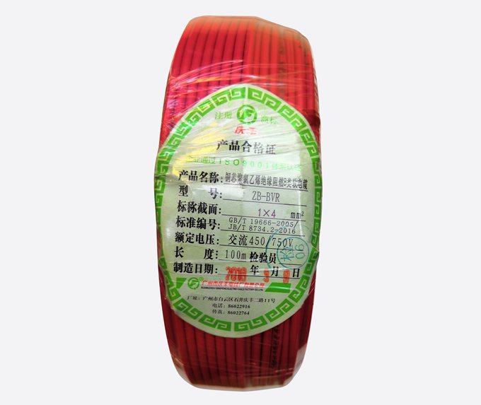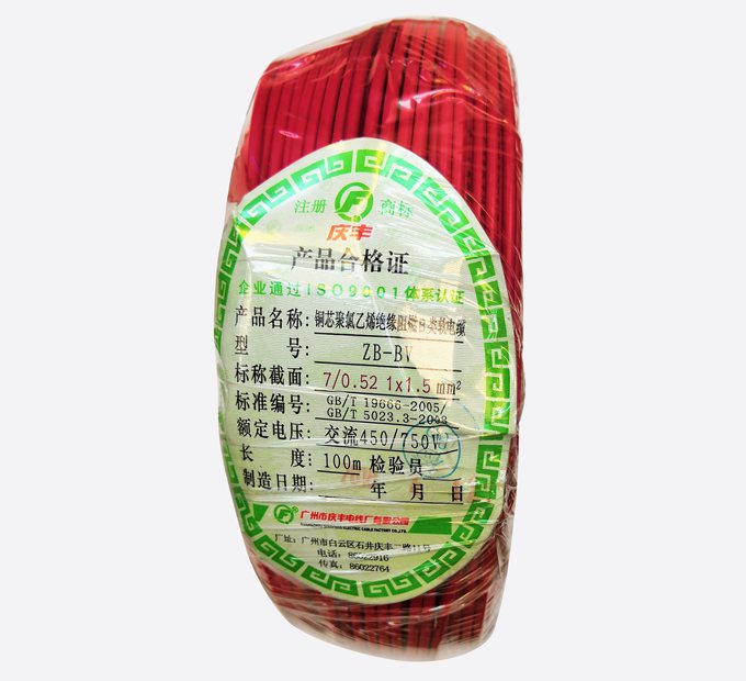 廣州慶豐電纜ZB-BVV阻燃B級家裝電線